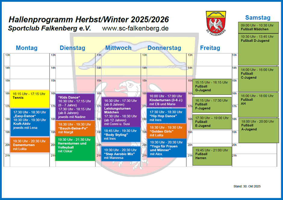 Für Details zum Hallenprogramm bitte die Info-Seiten im Menü (Hallenprogramm) öffnen.